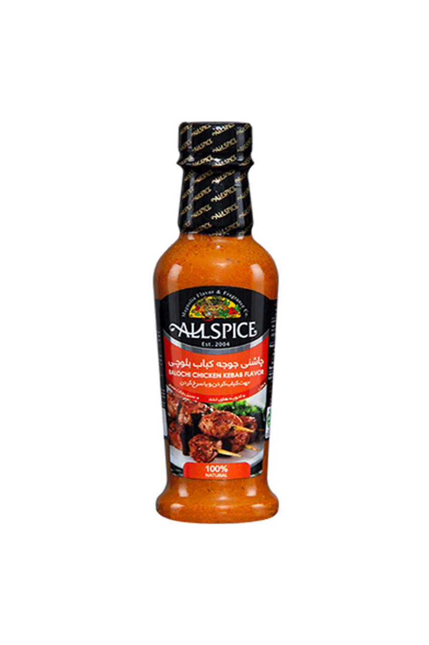 چاشنی جوجه کباب بلوچی دارای طعم تند و آتیشین میباشد. محتویات آن از هل، فلفل قرمز، میخک، دارچین، ادویههای تند بلوچی، نمک و روغن تشکیل میشود.